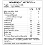 INGREDIENTES: colágeno hidrolisado (peptídeos de colágeno Verisol®), ascorbato de sódio (vitamina C), DL alfa acetato de tocoferol (vitamina E), sulfato de zinco (zinco), palmitato de retinol (vitamina A), biotina, ácido pantotênico e antiumectante dióxido de silício. NÃO CONTÉM GLÚTEN. ALÉRGICOS: PODE CONTER DERIVADOS DE LEITE E DE SOJA. Pode conter traços desses ingredientes devido ao compartilhamento de equipamentos, contudo, medidas rigorosas de controle e limpeza são adotadas para evitar esta ocorrência. |